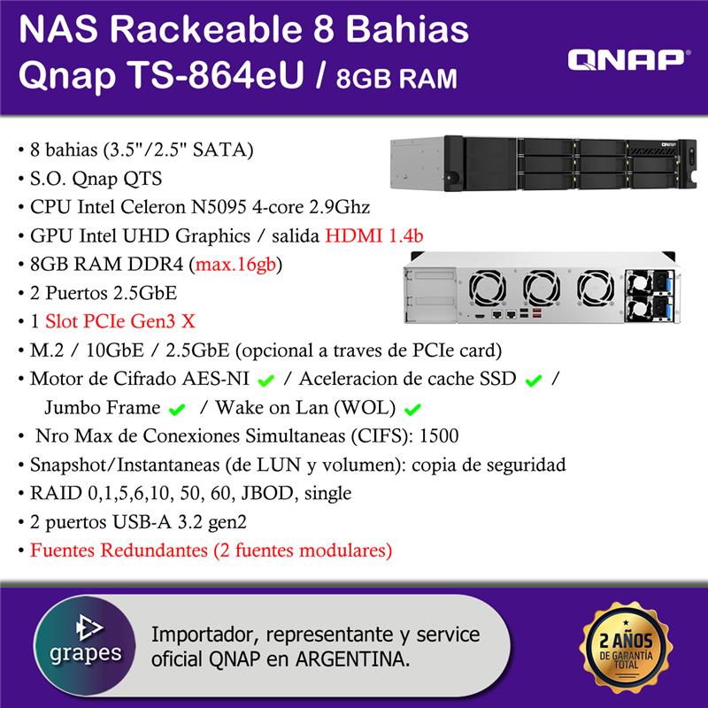 El TS-864eU-RP está equipado con un procesador Intel® Celeron® N5095 de cuatro núcleos (con potencia de hasta 2,9 GHz). El diseño compacto y de poca profundidad facilita la instalación en armarios multimedia pequeños o en lugares con una gran cantidad de cableado. Con capacidad de almacenamiento ampliable y aplicaciones completas, el TS-864eU-RP supera a la generación anterior.