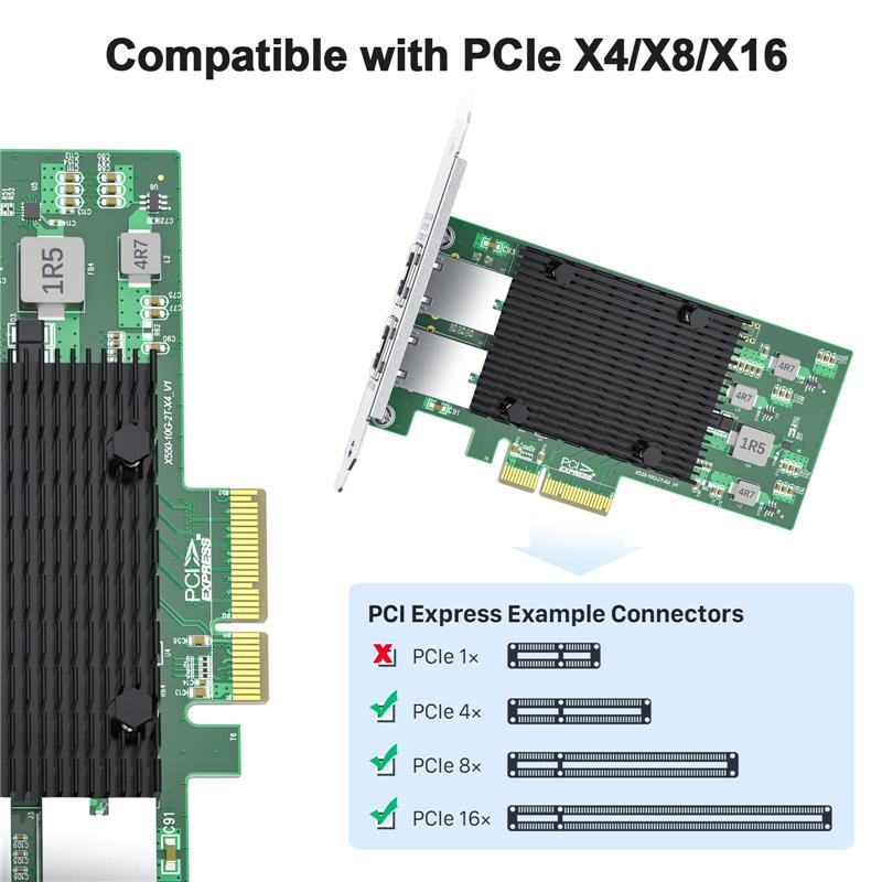 Placa NIC 2x RJ45 10G - Intel X550-AT2 - PCI-e v3 X4 - 10GTEK