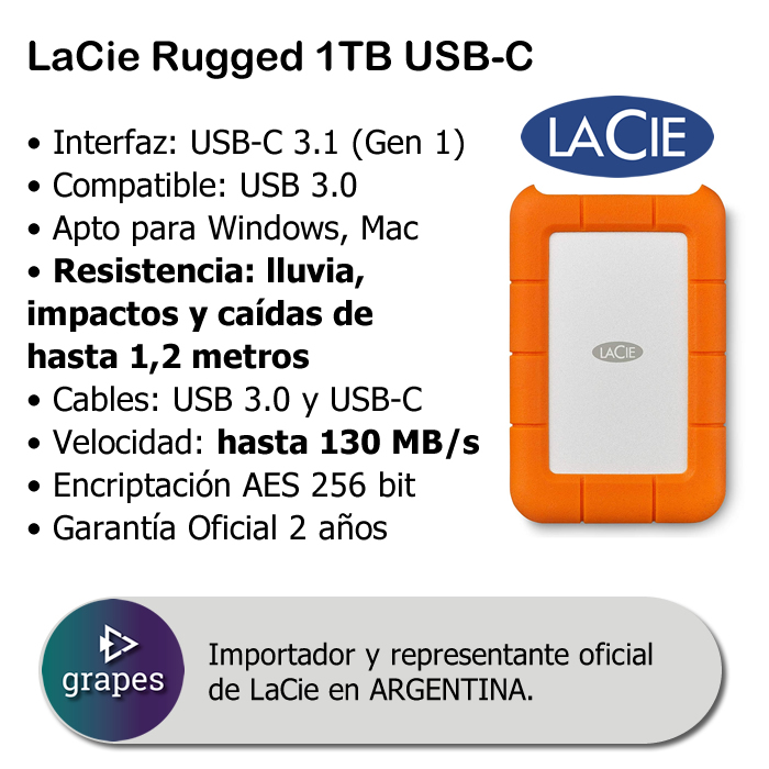 • Incluye cable USB-C a USB-A (USB 3.0)
